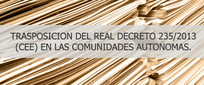 Indice de Normativa referente a la trasposición del Real Decreto 235/2013 ante las Comunidades Autónomas.