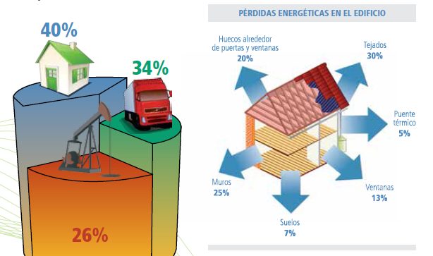 Un edificio rehabilitado térmicamente puede llegar a consumir hasta un 90% menos de energía que el mismo sin aislamiento. Los edificios mal aislados pierden la energía que le proporcionamos en porcentajes diferentes a lo largo de su envolvente.