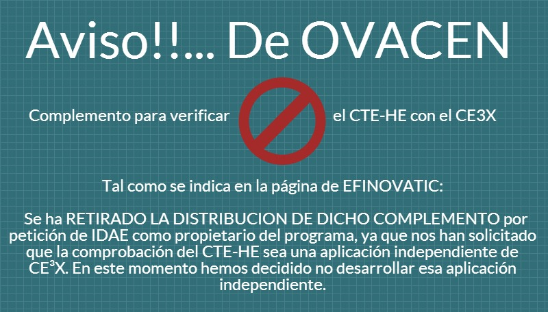 “Se ha retirado la distribución de dicho complemento por petición de IDAE como propietario del programa, ya que nos han solicitado que la comprobación del CTE-HE sea una aplicación independiente de CE³X. En este momento hemos decidido no desarrollar esa aplicación independiente.” (Si queréis comprobarlo desde AQUÍ)